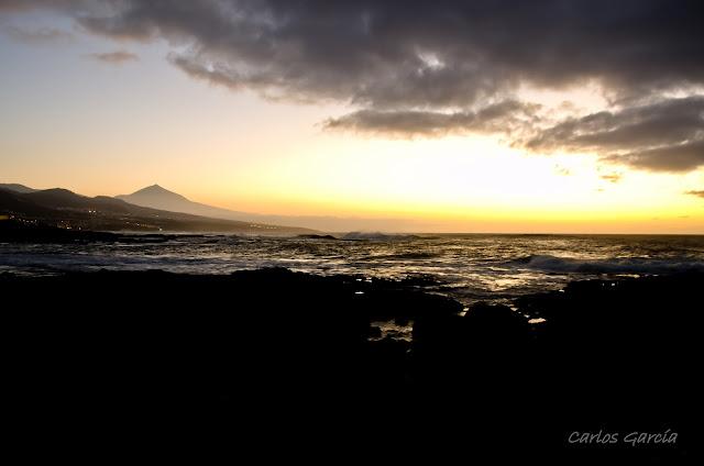 En esta fotografía tomada en febrero de este año, El Teide (volcán que sobresale al fondo) y La Punta del Hidalgo (localidad mágica del norte de Tenerife) se encuentran en el ocaso de un día que rinde su colorido ante el avance gris de la noche.
