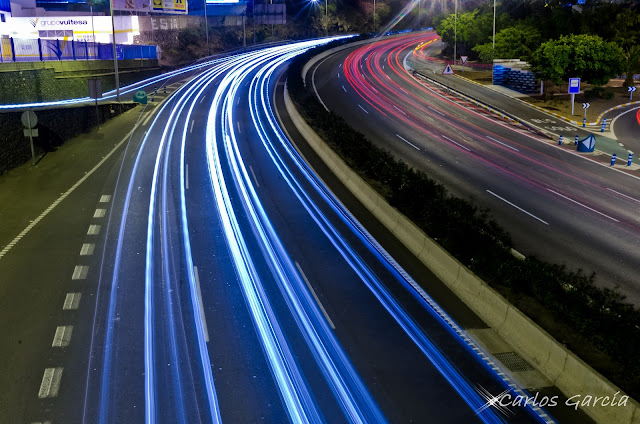 Night shot with 30 seconds of exposure of the TF-5 freeway, with frame taken from the bridge that crosses it near of Nuestra Señora de Candelaria hospital.