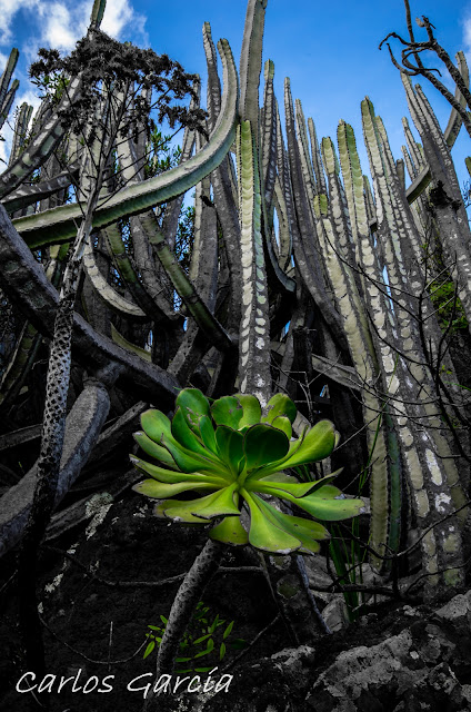 La soledad parece ser uno de sus atributos, sin menoscabar en el hermoso tono verde de sus robustas hojas. Si lo observamos más de cerca (ver cuarta imagen), emerge hermoso cual flor de loto oriental.
