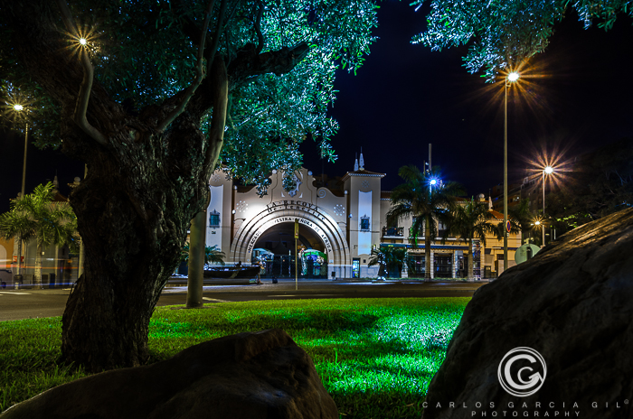 La segunda y quinta fotografías arriba expuestas fueron realizadas con exposiciones más prolongadas, a fin de que quedaran marcados los faros de los vehículos que transitaban por la rotonda.