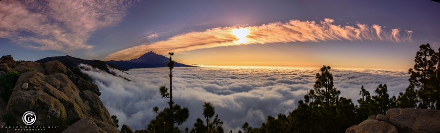 Unas condiciones tan extraordinarias no pueden pasar desapercibidas para un fotógrafo amante de la naturaleza. El extenso mar de nubes, los cirrocúmulos por encima del Teide y la vegetación, árboles y pidras volcánicas formaban un cóctel perfecto para hacer unas tomas más que interesantes.