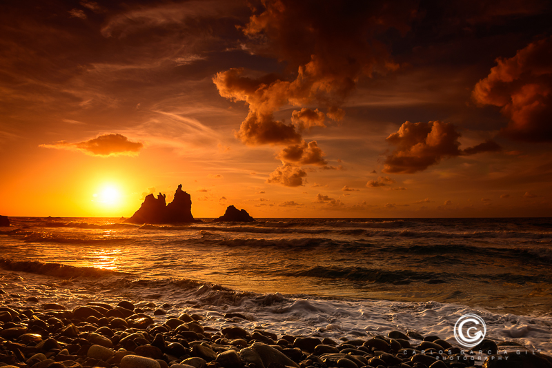 These days of May 2013 have given us extraordinary cloud formations in Tenerife island, which are amazingly reflected at dawn or sunset. Thus, in the present case, the sunset was truly colossal in Benijo.